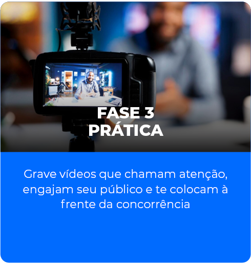 Dentro do nosso curso, você encontrará tudo o que precisa para superar a timidez e se destacar na gravação dos seus vídeos, através de uma abordagem completa e prática, dividida em 5 fases
