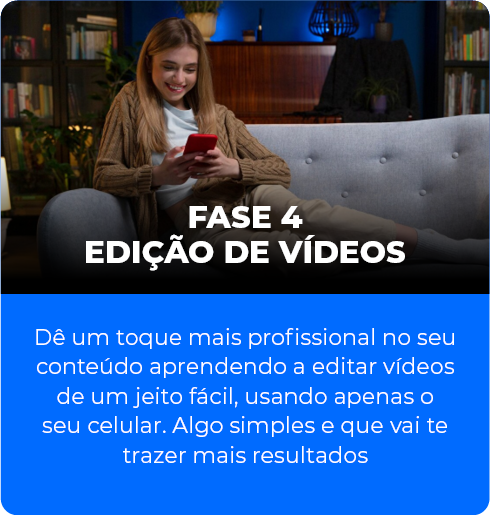 Mesmo sem experiência, você vai aprender a editar vídeos de forma mais simples e prática, usando apenas o celular em menos de 2horas. Agora as suas produções terão um toque mais profissional, que prende o público e transmite sua mensagem com qualidade.